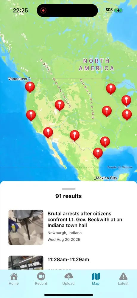 In July, I started gathering evidence. I built a tool for my own use, a database that would preserve and geotag videos even as the posts inevitably get removed from social media. After conversations with activists, members of affected communities, journalists, and countless others, it became clear that it should be made public and offered as a free resource, specifically an app.